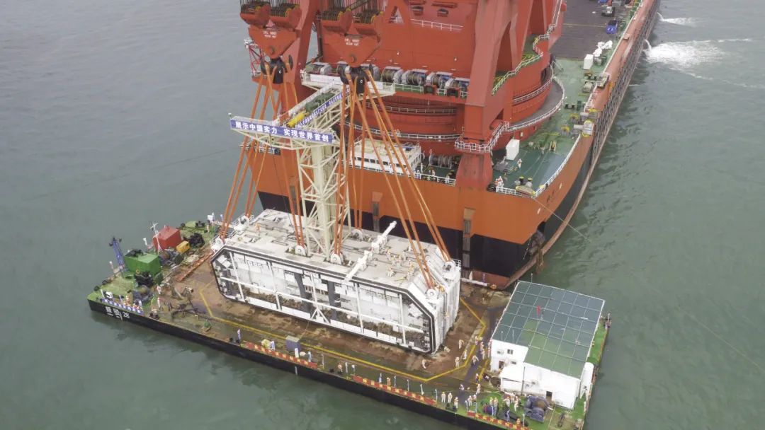 港珠澳大橋最終接頭縫隙僅為12.35米,接頭長度就要12米,且重達6000噸,為避免其入水后將受到洋流,浮力等影響,要求高低差控制在15mm以內(nèi),難度堪比“太空對接”。完成此次吊裝的產(chǎn)品是巨力索具提供的荷載900噸,長度60米的高強度吊裝帶,其長度誤差控制在50mm內(nèi),比常規(guī)吊帶精度提高了數(shù)十倍。而承載此次吊裝的是世界最大單臂全旋回起重船“振華30”,同時振華30所配套的所有主鉤起升和變幅鋼絲繩均是由巨力索具生產(chǎn)制造,其單根重量超200噸,是當時國內(nèi)最大直徑復雜結(jié)構(gòu)超高強度鋼絲繩,是助力振華30實現(xiàn)12000噸強力吊裝的關(guān)鍵組成部分。