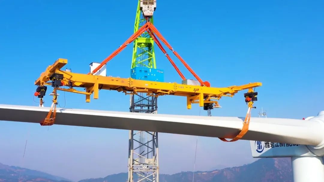 首戰(zhàn)告捷!雅礱江水電臘巴山風電項目風機單葉片吊裝